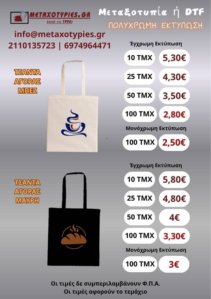 Πάνινες Τσάντες σε πολλά σχέδια και χρώματα.